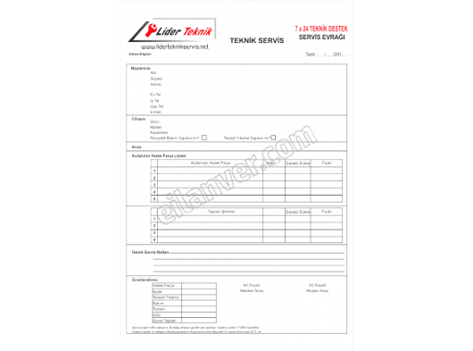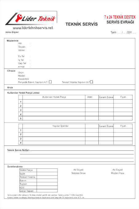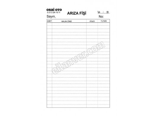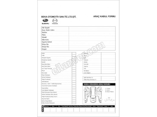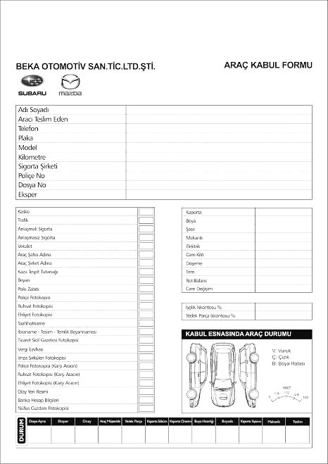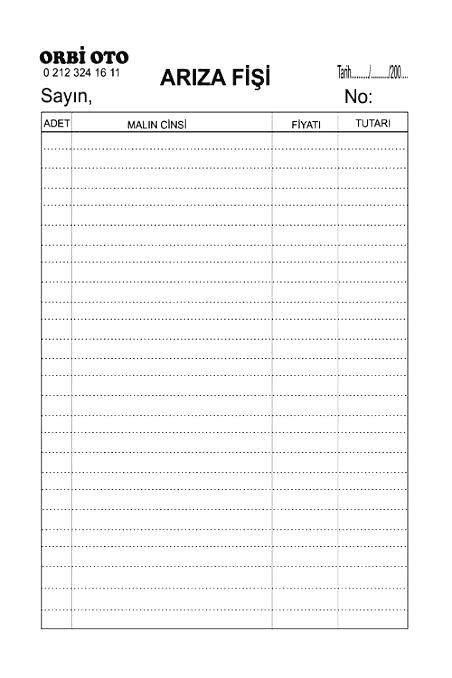 Oto Servis fişi, Sözleşme, Fiş, Makbuz, Form,